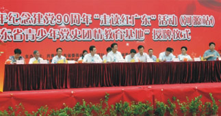 2011年6月2日,由團(tuán)省委、南方日報(bào)社、省委黨史研究室主辦,團(tuán)河源市委、團(tuán)紫金縣委承辦的廣東省青少年紀(jì)念建黨90周年“走讀紅廣東”活動(dòng)(河源站)在紫金縣爾崧中學(xué)正式啟動(dòng)。省委黨史研究室巡視員陳弘君、團(tuán)省委副書記陳小鋒、市委常委、宣傳部部長吳善平等領(lǐng)導(dǎo)出席了啟動(dòng)儀式,全國青聯(lián)委員、霸王花執(zhí)行總裁朱榮業(yè)受邀參加了此次活動(dòng)。儀式上,我市劉爾崧紀(jì)念館、阮嘯仙故居、黃居仁故居三處紅色遺址被共青團(tuán)廣東省委員會授予“廣東省青少年黨史團(tuán)情教育基地”。儀式結(jié)束后朱榮業(yè)總裁還參加